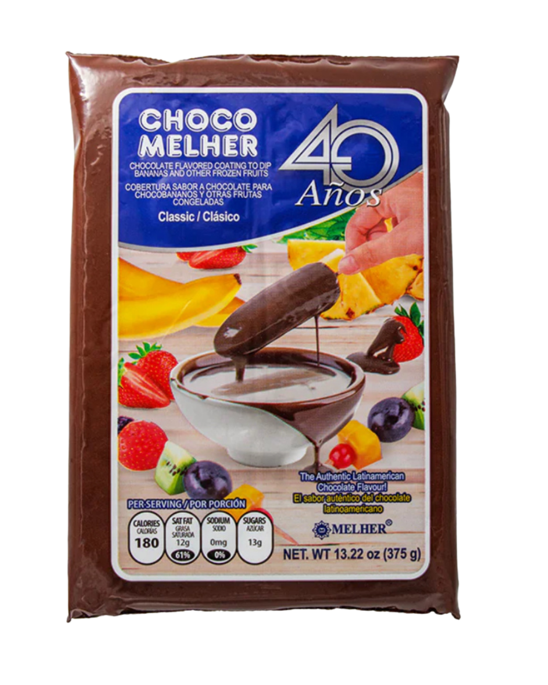 Choco Melher es un recubrimiento de chocolate que se utiliza principalmente para cubrir frutas congeladas, como plátanos y fresa, para hacer «chocobananos» u otros bocadillos congelados.