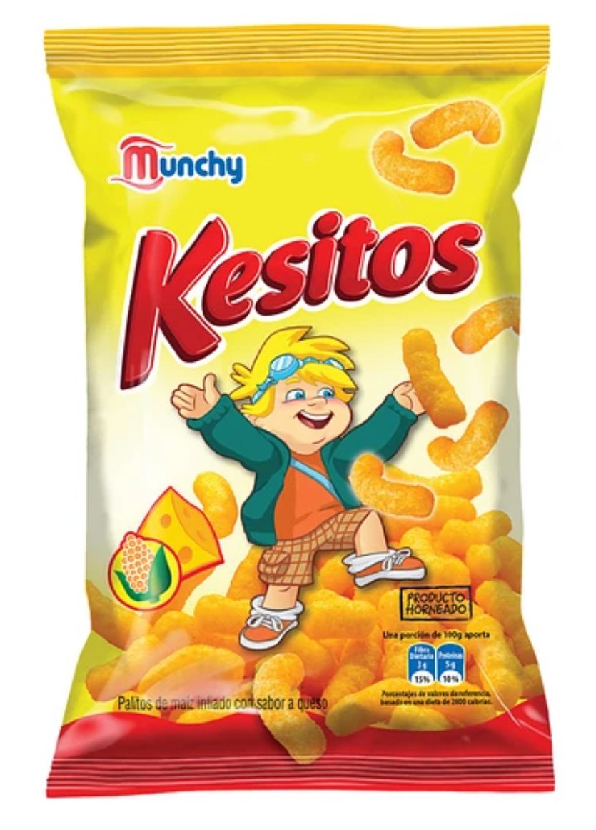 Snacks salados y crujientes a base de harina de maíz, con un intenso sabor a queso.