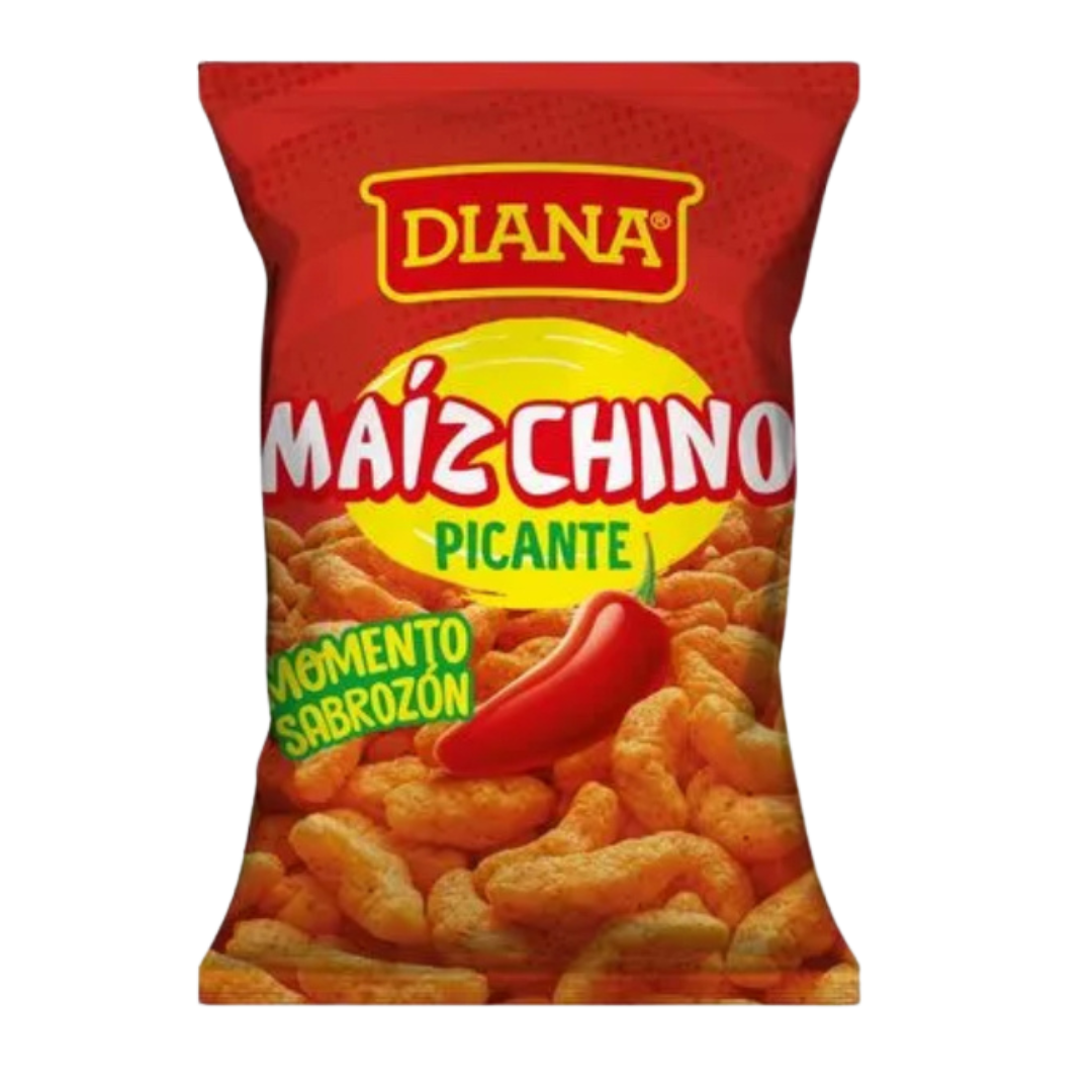 El Maíz Chino de Diana es un snack crujiente hecho de maíz inflado con un sabor distintivo a barbacoa y chile picante.