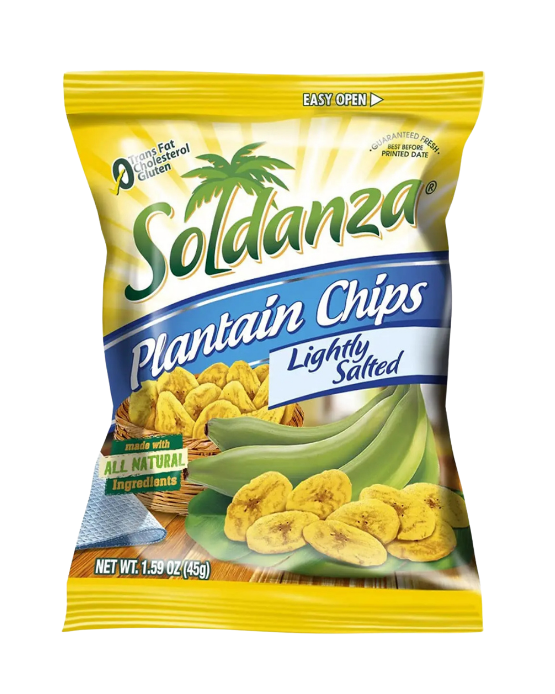 Los platanitos Soldanza son snacks crujientes de Costa Rica, elaborados con plátano natural (verde o maduro) frito y salado o con sabores como limón o dulce/picante. Son populares por su textura ligera, siendo una alternativa a las patatas fritas, ideales para picar.