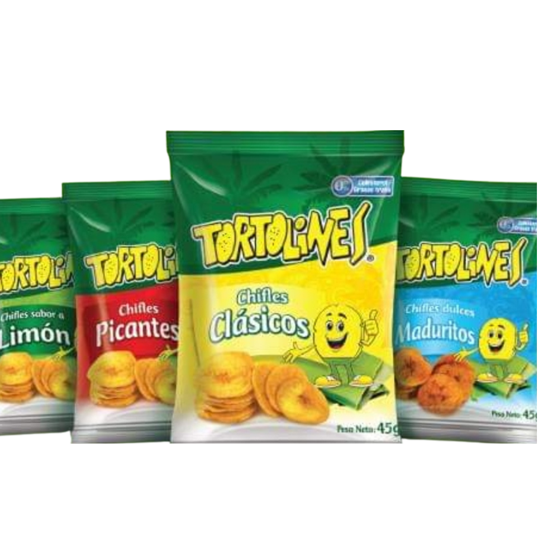 Snacks de plátano crujiente. Sabores sal, dulce, limón y picante.