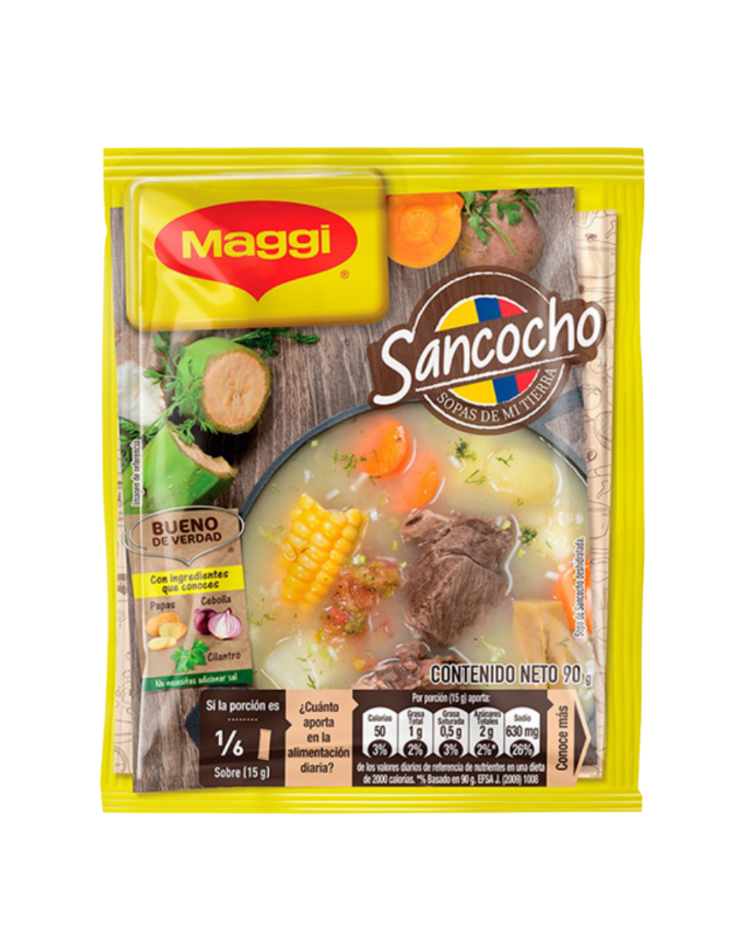 La sopa Maggi de sancocho, ajiaco o choclo es una solución culinaria deshidratada, practica y rápida, que recrea el sabor tradicional del sancocho, el ajiaco y la sopa de choclo latinoamericano, especialmente el colombiano.