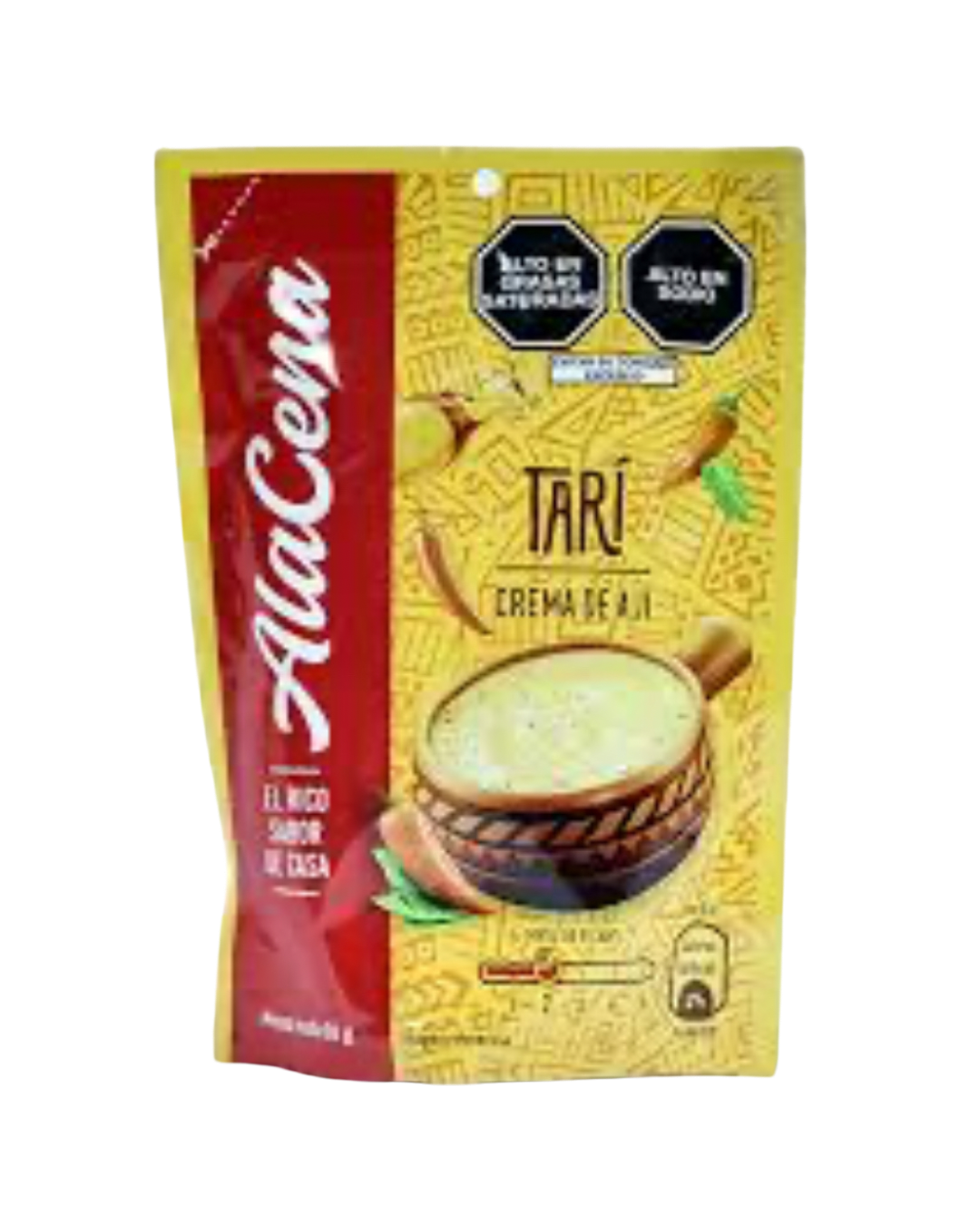 Salsa peruana cremosa, elaborada con ají amarillo fresco, ajo, cebolla y huacatay, que ofrece un sabor auténtico y un toque moderado de picante es ideal para acompañar diversas comidas.