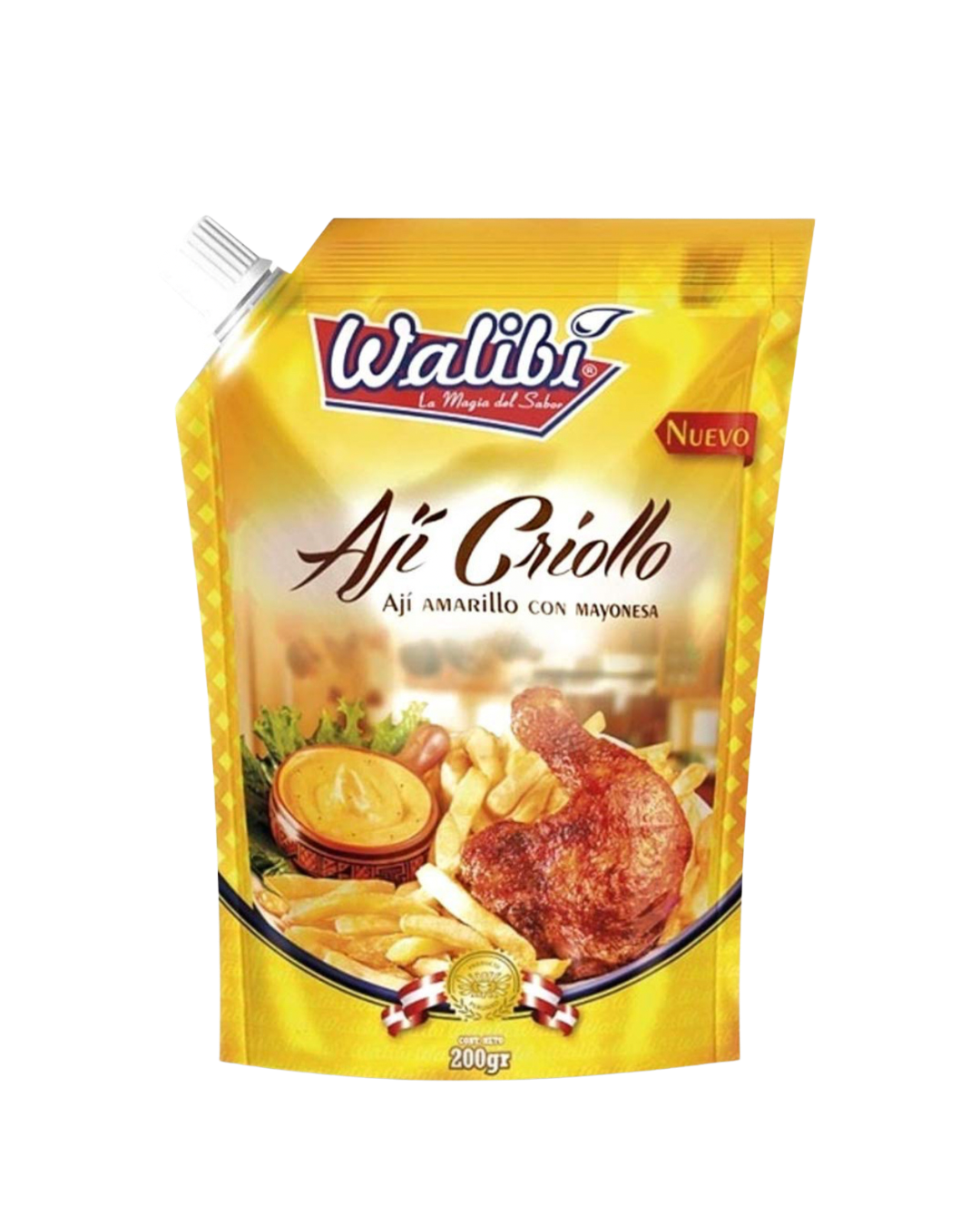 Salsa cremosa peruana, elaborada a base de ají amarillo, huacatay, cebolla, ajo y otras especias, ideal para complementar tus comidas.
