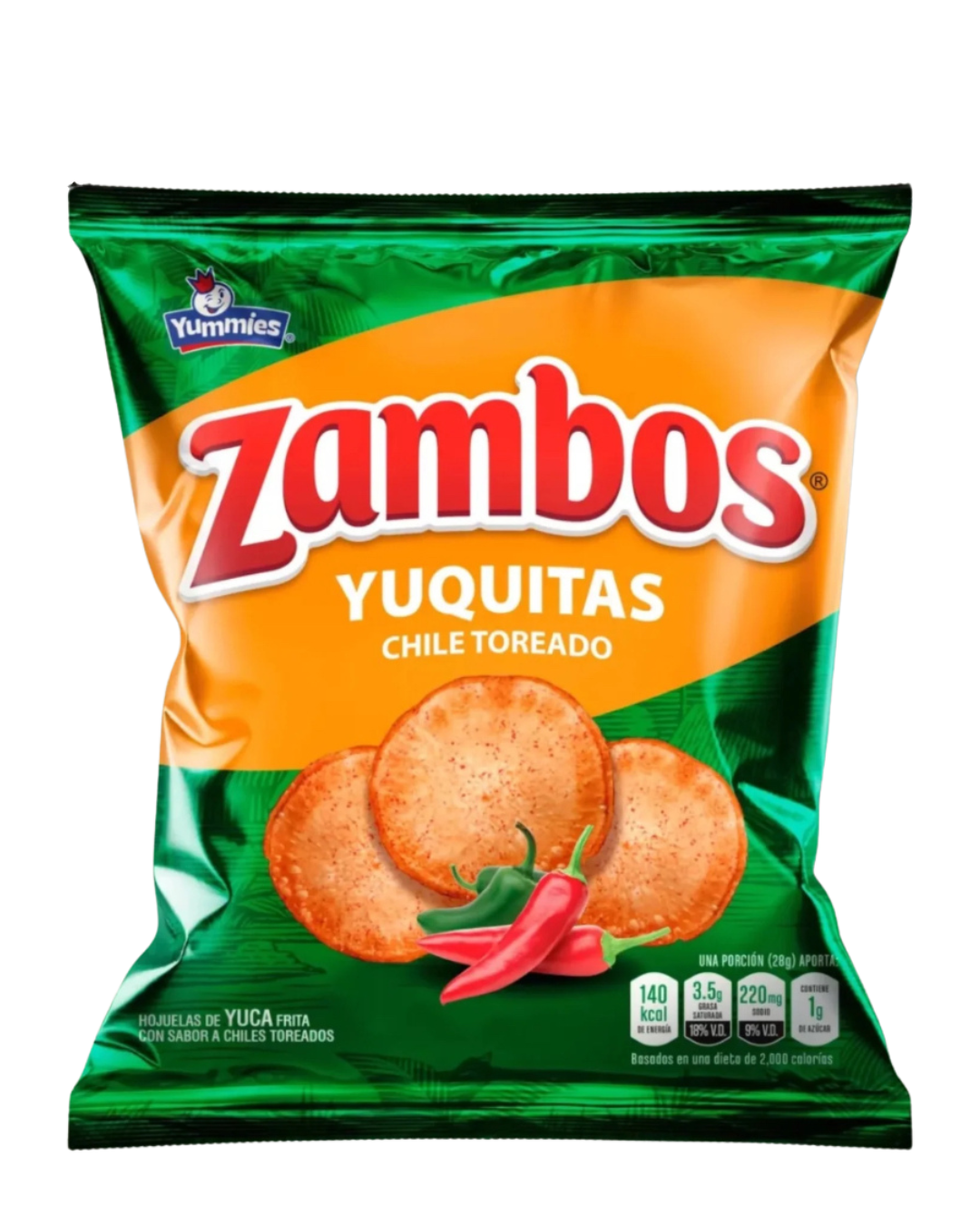 Zambos Yuquitas son un snack hondureño hecho con finas rodajas de yuca frita y crujiente, que son sazonadas con sal y picante, producto autentico de honduras e ideal para picotear y compartir con amigos.